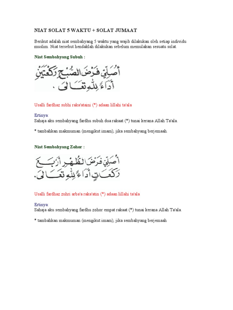 Lafaz Niat 5 Solat Fardhu Dan Solat Jumaat Beserta Otosection